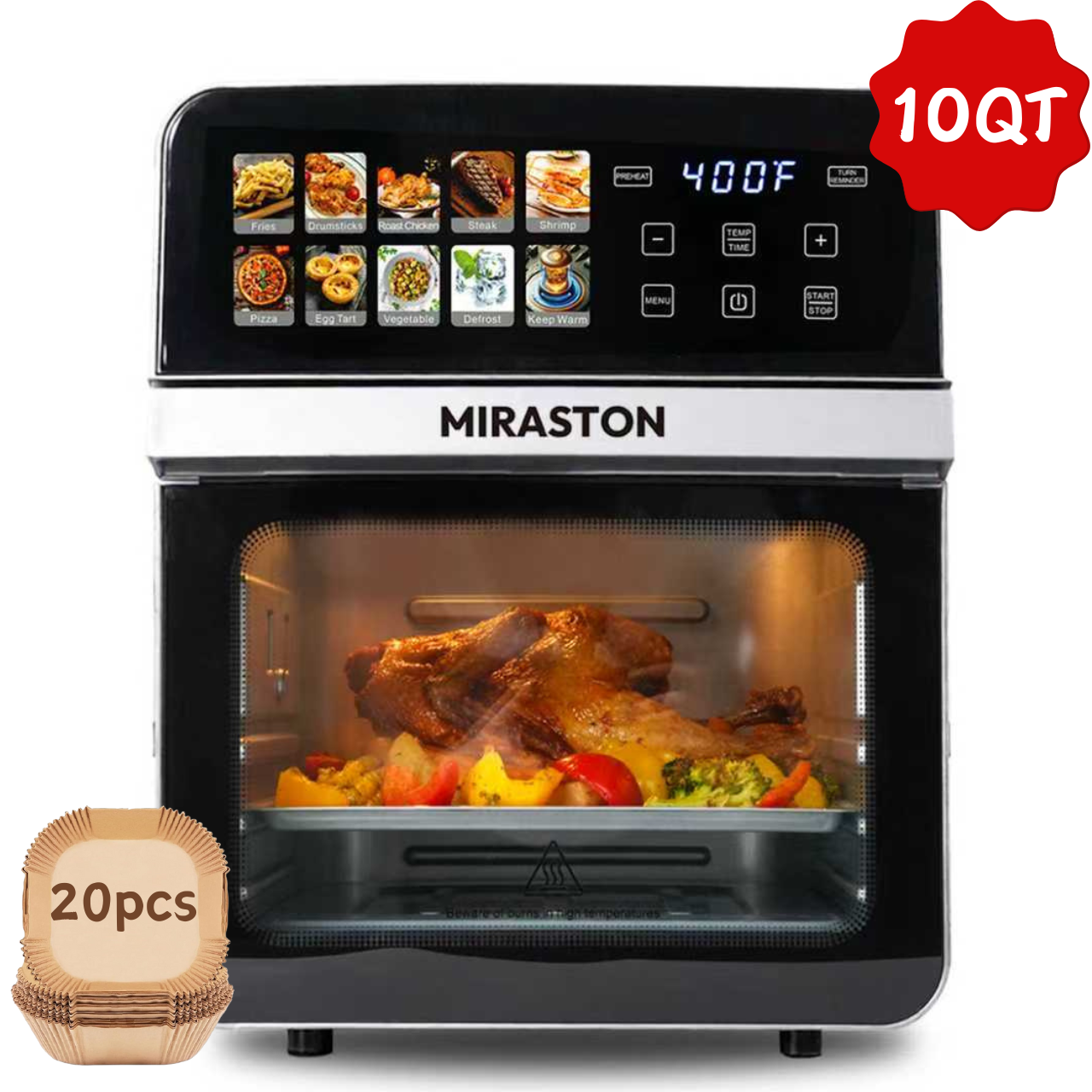 MIRASTON 10QT Air Fryer Toaster Oven Combo with 8 Presets, Visible Window and Touchscreen, Includes 2 Accessories & Recipe