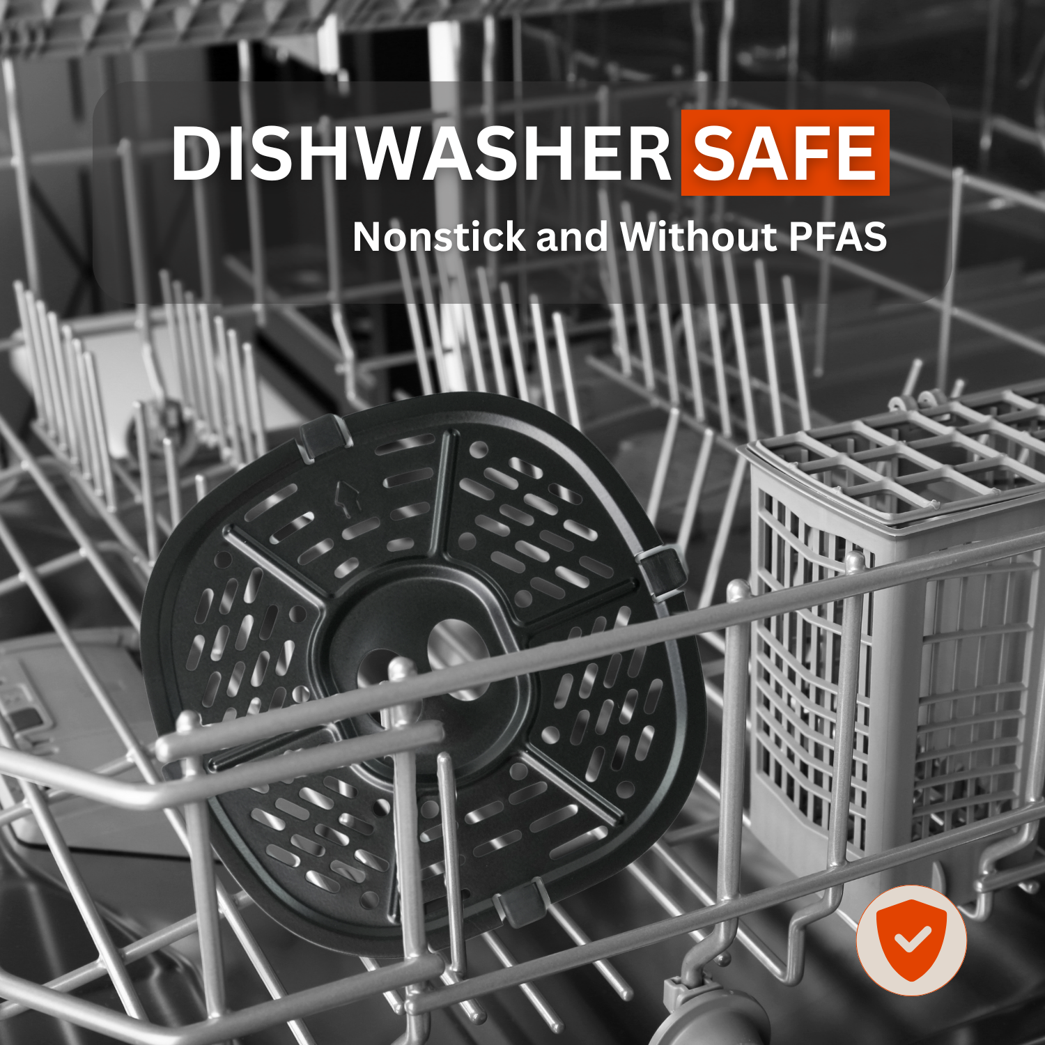 The MIRASTON air fryer basket's tray accessory is a versatile tool designed to enhance cooking efficiency and versatility. It features a perforated design that optimizes rapid air circulation, ensuring even cooking with minimal or no oil. This structure allows excess fats and oils to drain away, promoting healthier meals while maintaining crispy textures. The spacious surface accommodates larger items like whole fish, steaks, or vegetable batches, and its non-stick properties simplify food release and cleanup, being dishwasher-safe for convenience.