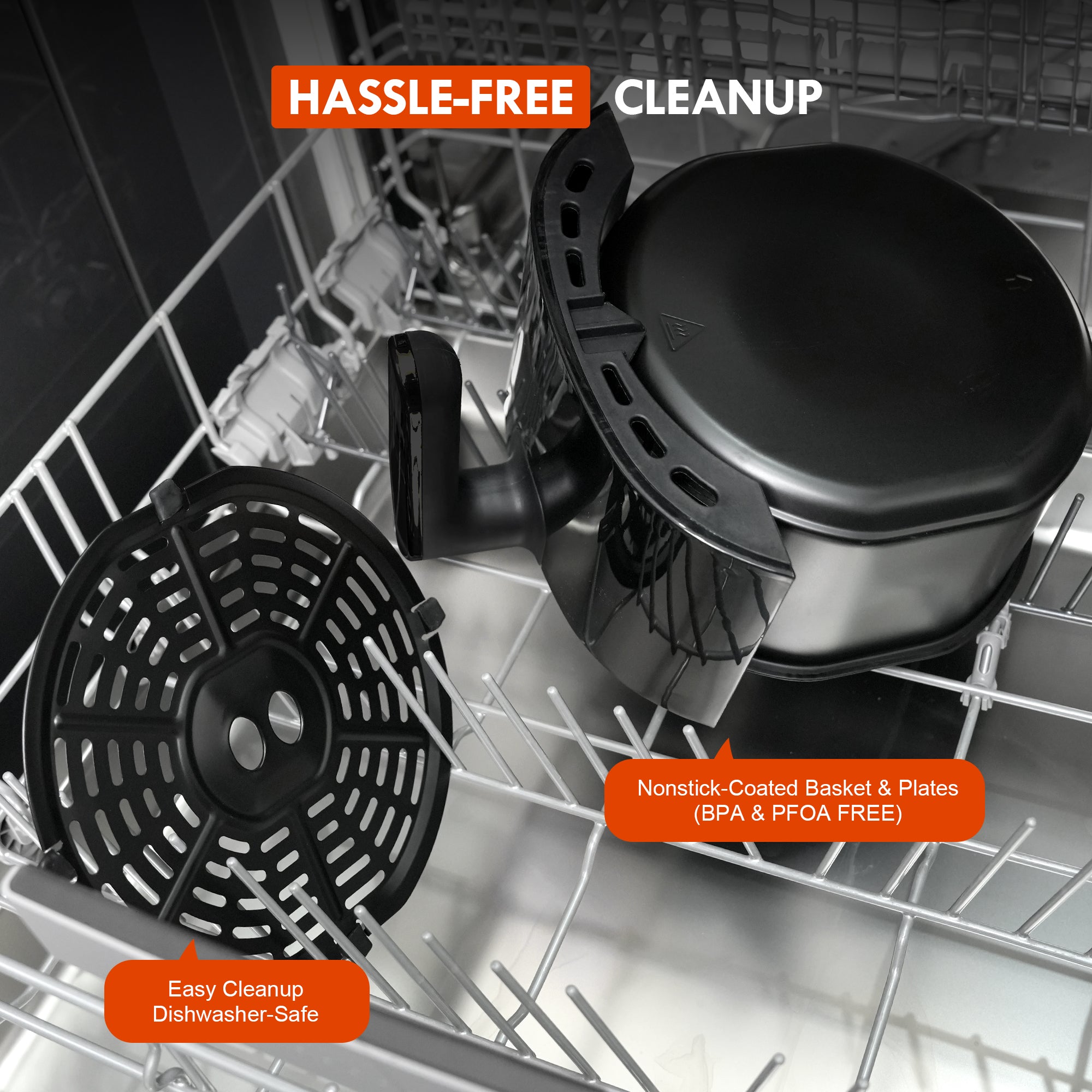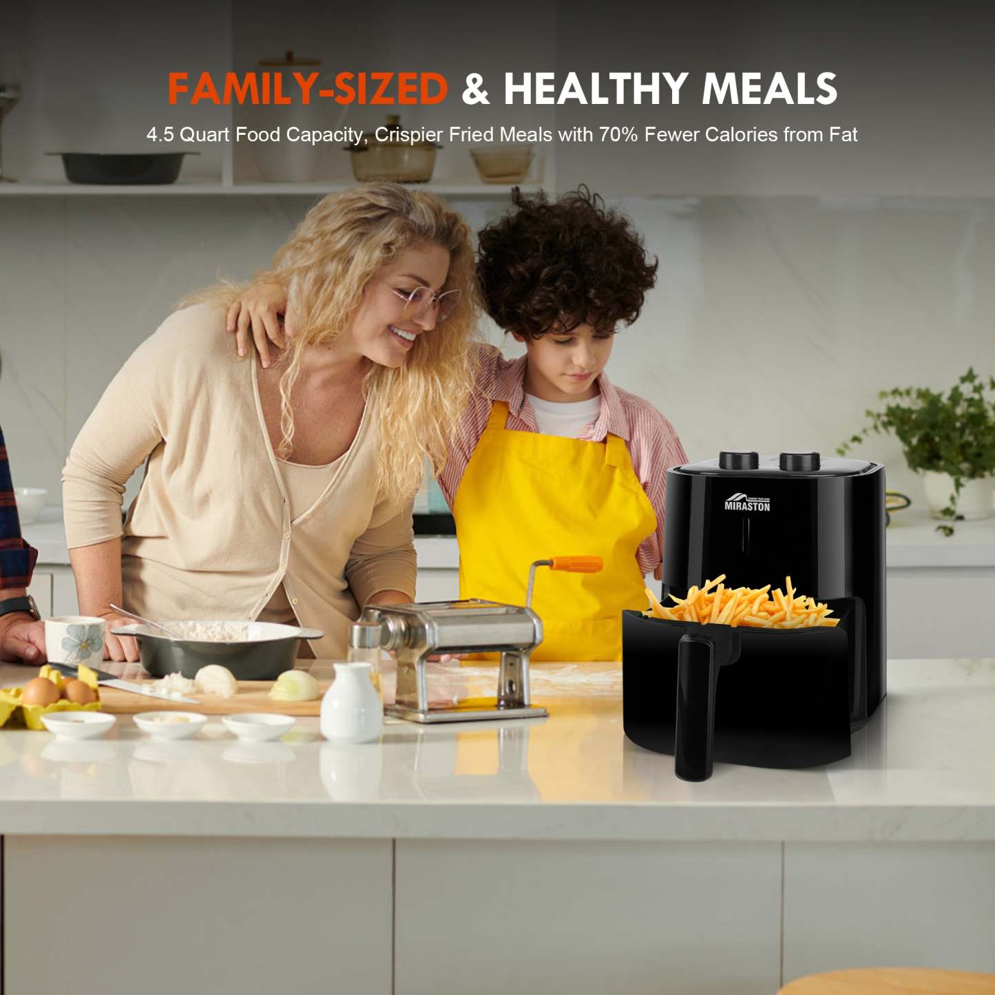 With a 4.5QT capacity , this air fryer is spacious enough to cook meals for 2-4 people, yet compact enough to fit seamlessly into any kitchen space. Its sleek design ensures functionality without cluttering your countertop.