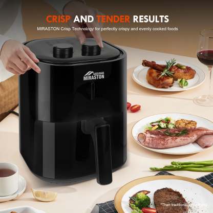 Experience the power of 360° hot air circulation with MIRASTON Air Fryer, delivering crispy-on-the-outside, tender-on-the-inside results without the need for excess oil. Enjoy all the flavor of your favorite foods while cutting up to 95% of the fat! Perfect for health-conscious cooks who don’t want to compromise on taste. Pro Tip for Reheating: Use the original cooking temperature and just 1/3 of the time to quickly reheat leftovers while keeping them fresh and crispy.