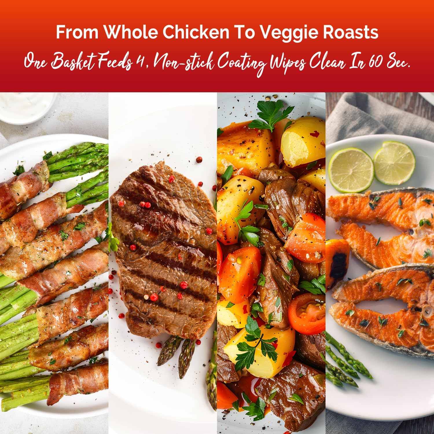 - Versatile Cooking: This 5.8-quart air fryer offers multi-purpose cooking, serving as an alternative to fryers, ovens, microwaves, toasters, and fruit dryers, reducing fat by 85%.