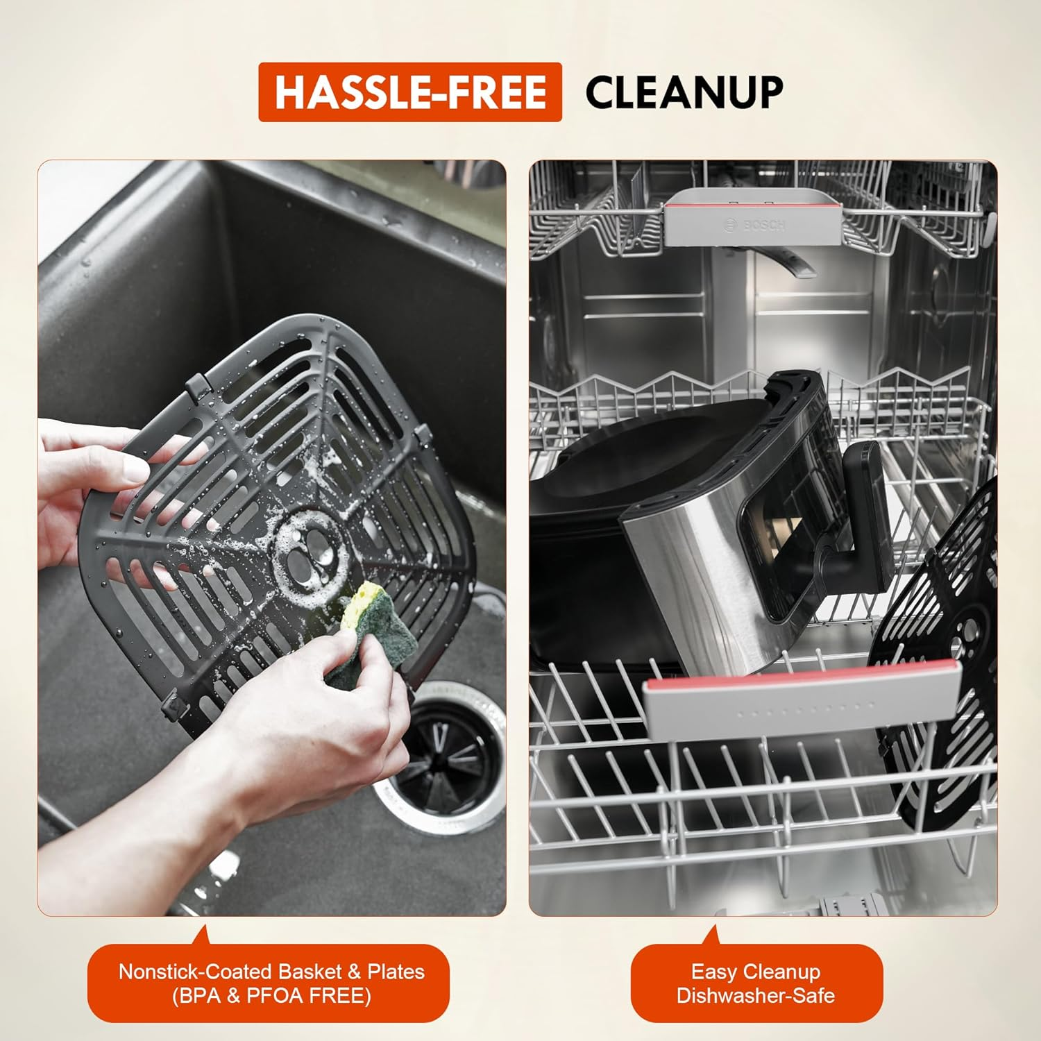 - Effortless Cleanup: Designed with a non-stick basket and dishwasher-safe components, including the rack, for hassle-free cleaning, complemented by an easy-to-maintain stainless steel finish.