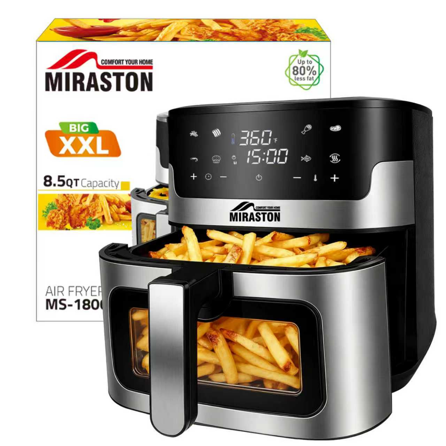 MIRASTON 8.5qt Family Air Fryer, Smart Touchscreen with 8-Preset, Dishwasher-Safe, Stainless Steel