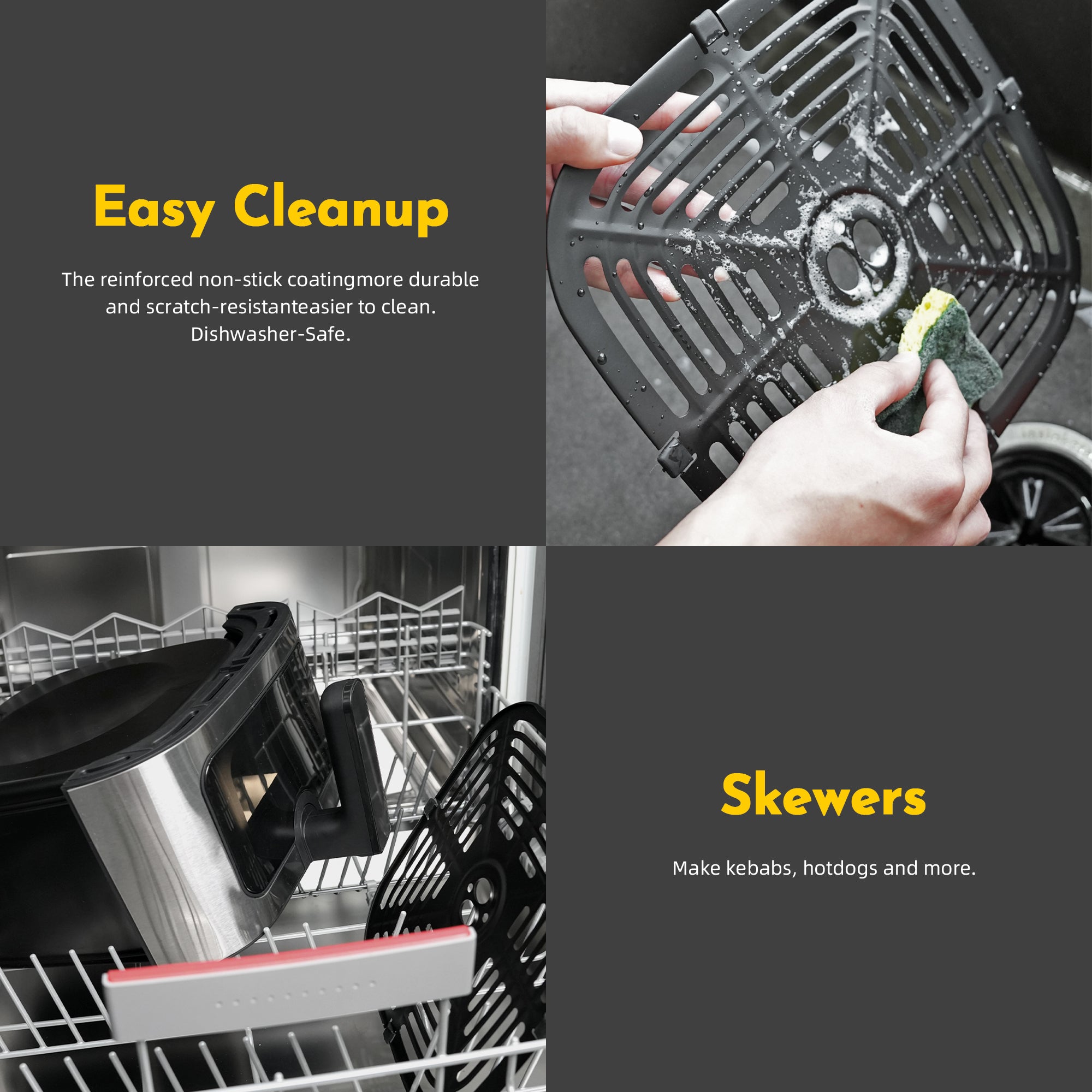 【Effortless Cleaning & Hassle-Free Maintenance】Enjoy stress-free cleanup with our 8.5QT Air Fryer. Featuring premium nonstick, BPA-free accessories, the dishwasher-safe basket and tray make maintenance a breeze. The smooth, fingerprint-resistant exterior wipes clean effortlessly, saving you time and effort. Perfect for busy homes, this air fryer combines easy cleaning, safety, and functionality for a hassle-free cooking experience.